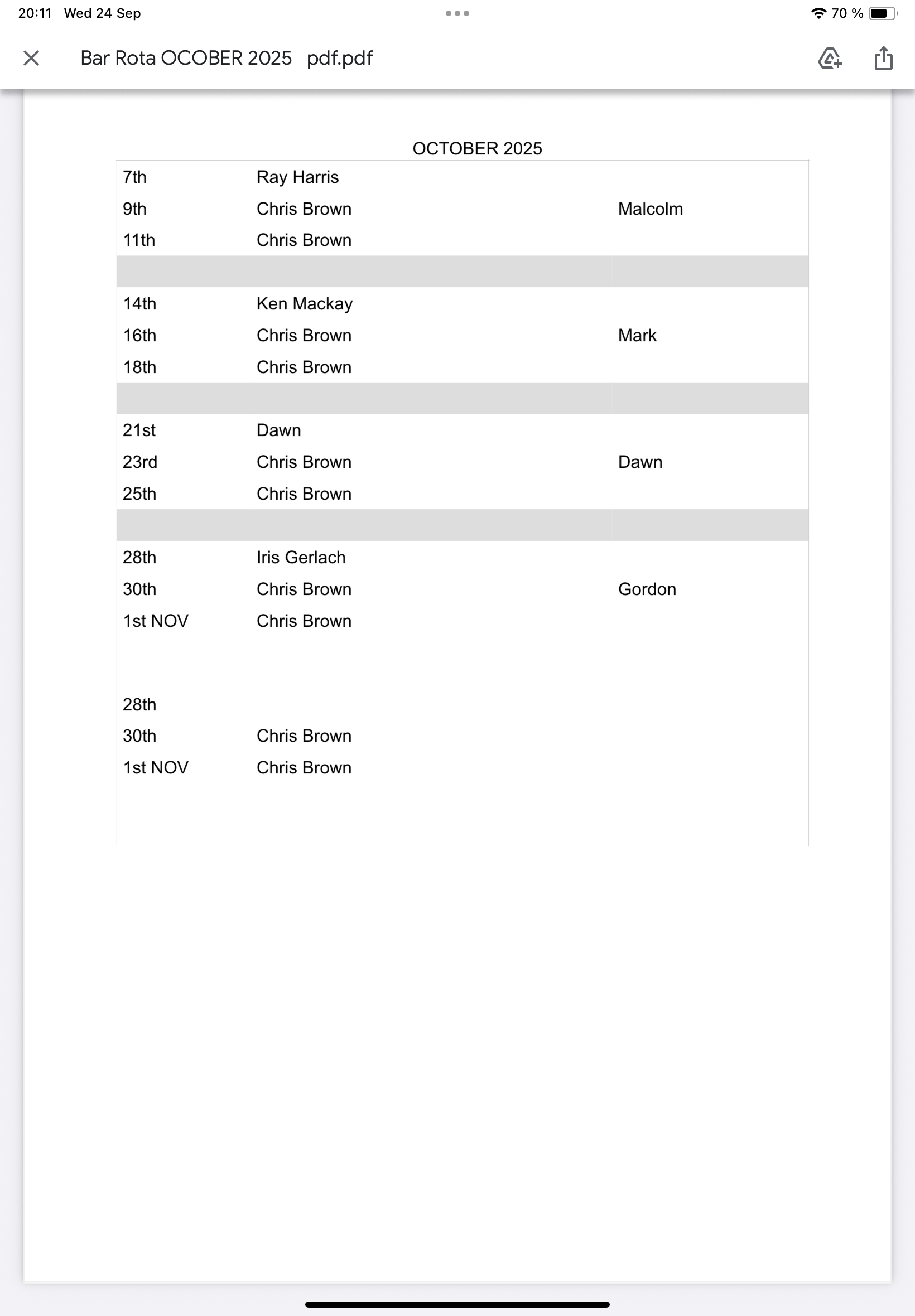 Please, if you can't make the day that you have been allotted bar duty, swap with somebody else. It is not acceptable to just not turn